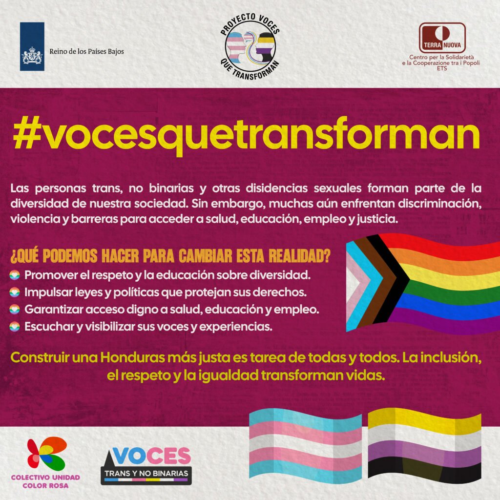 Visibilizar a las personas trans y no binarias 👥, promoviendo la educación 📚 sobre la diversidad de género y los derechos humanos ⚖️ en tres departamentos de Honduras 🇭🇳 y trece municipios.